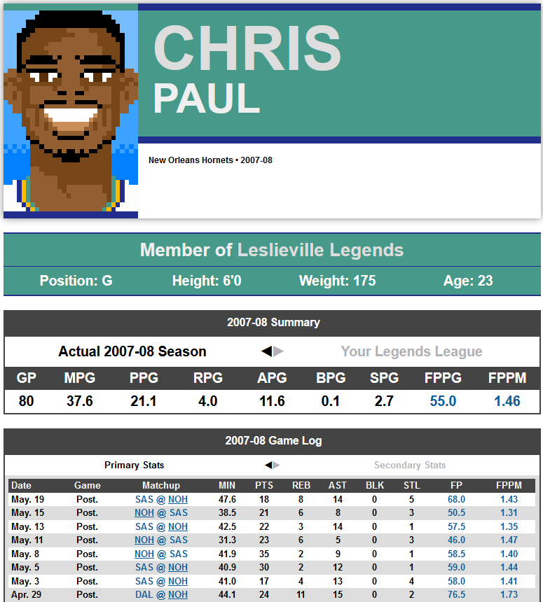 Crawl through statistics from any NBA season since 1973 and choose the era best suited for your fantasy league.